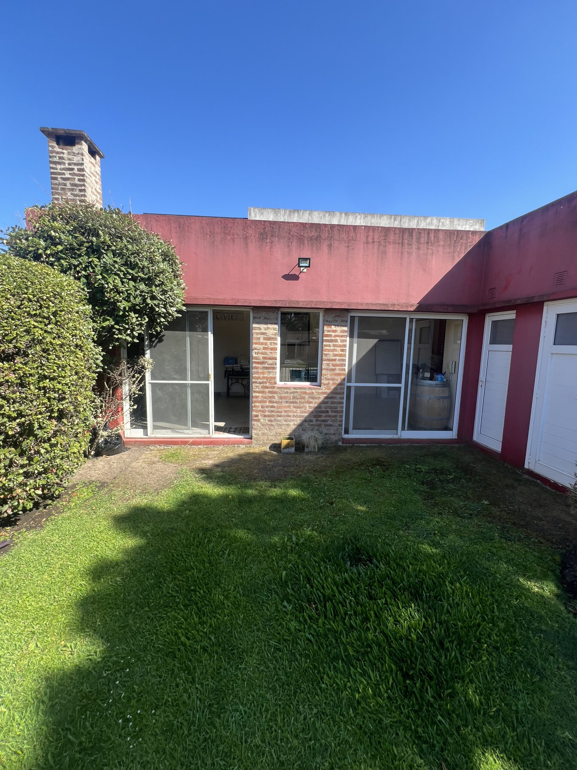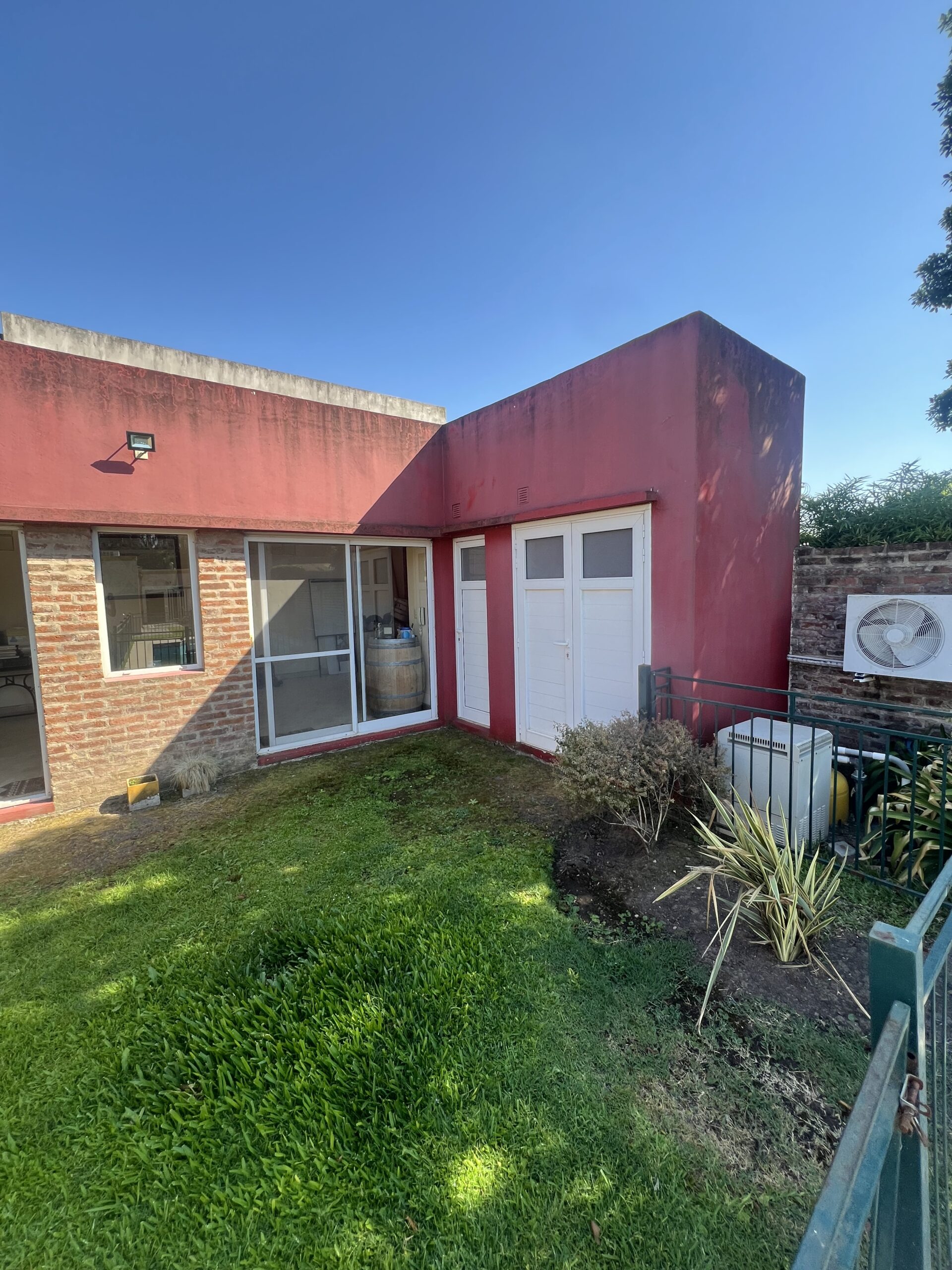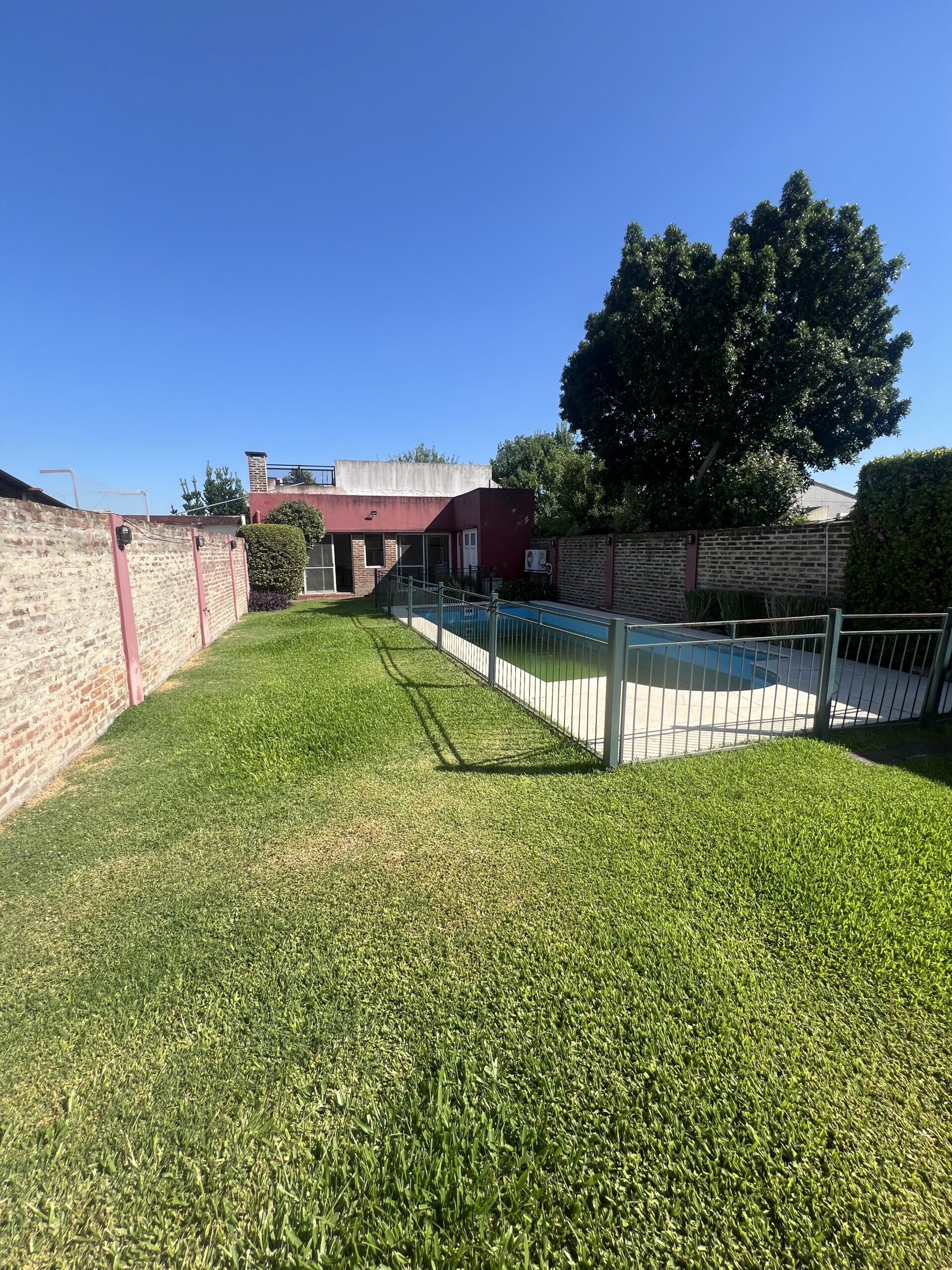 Cuenta con reja al frente, doble portón automático y cochera cubierta. Además, posee entrada lateral directa al jardín, lo que brinda mayor comodidad y circulación independiente.