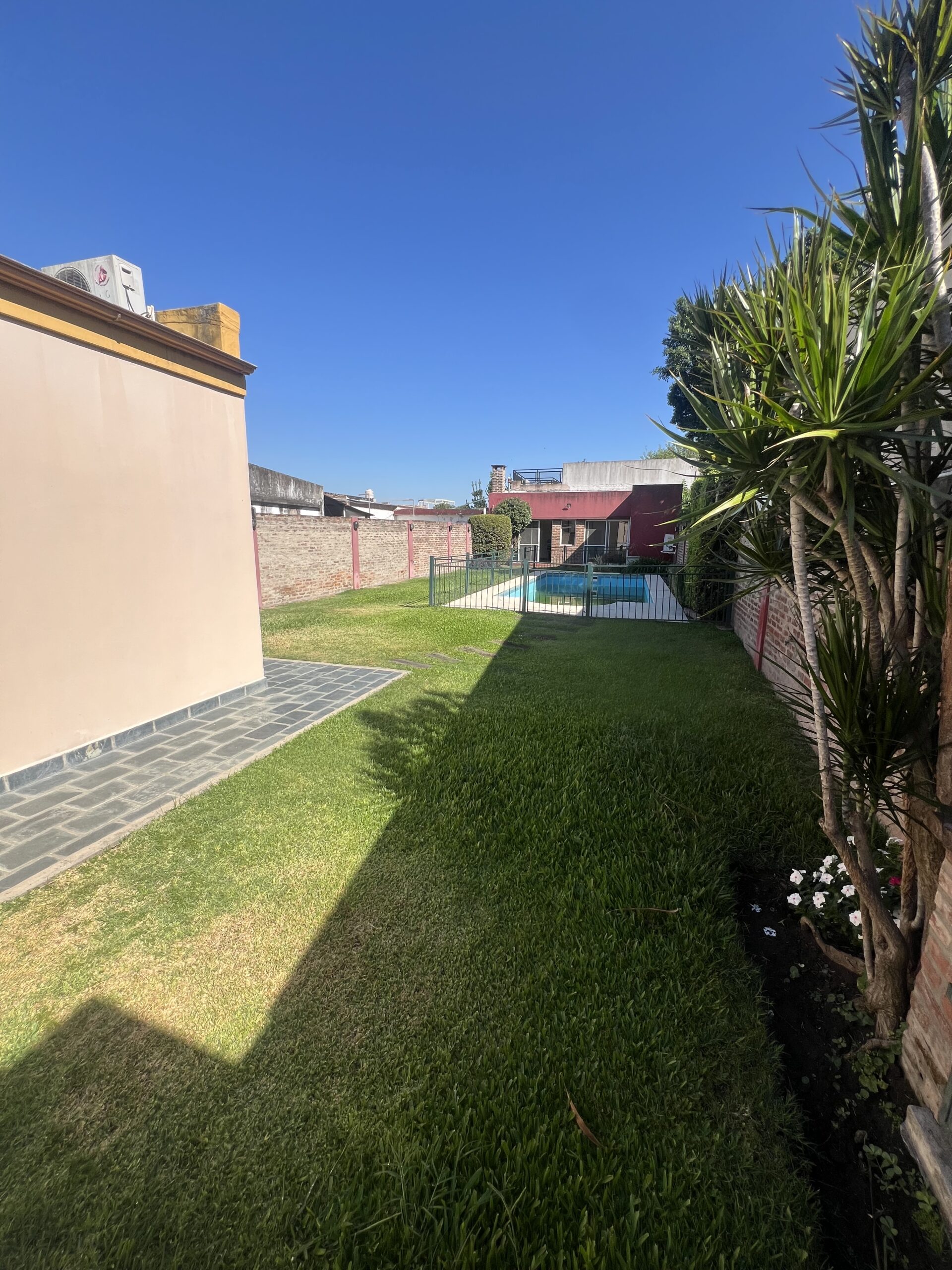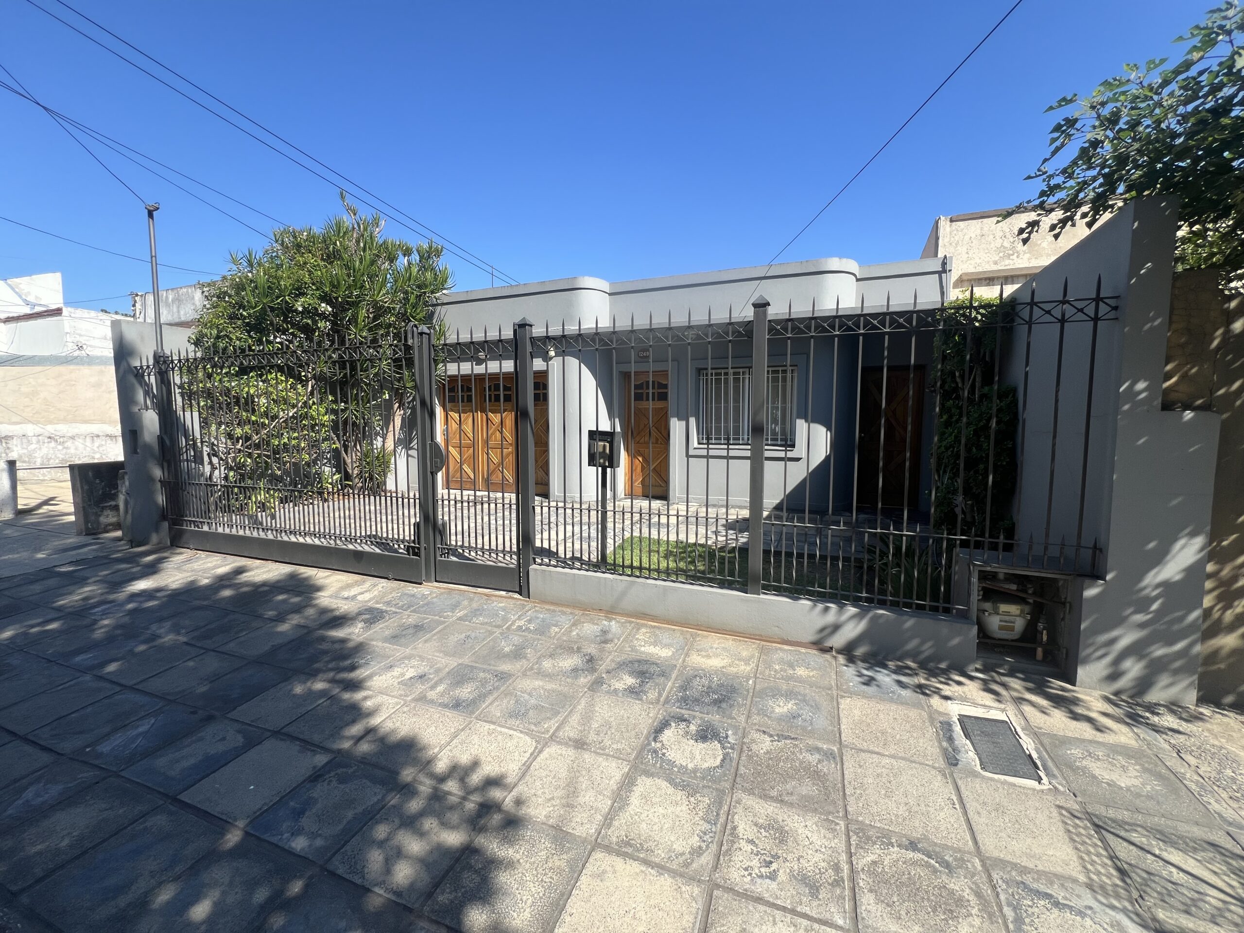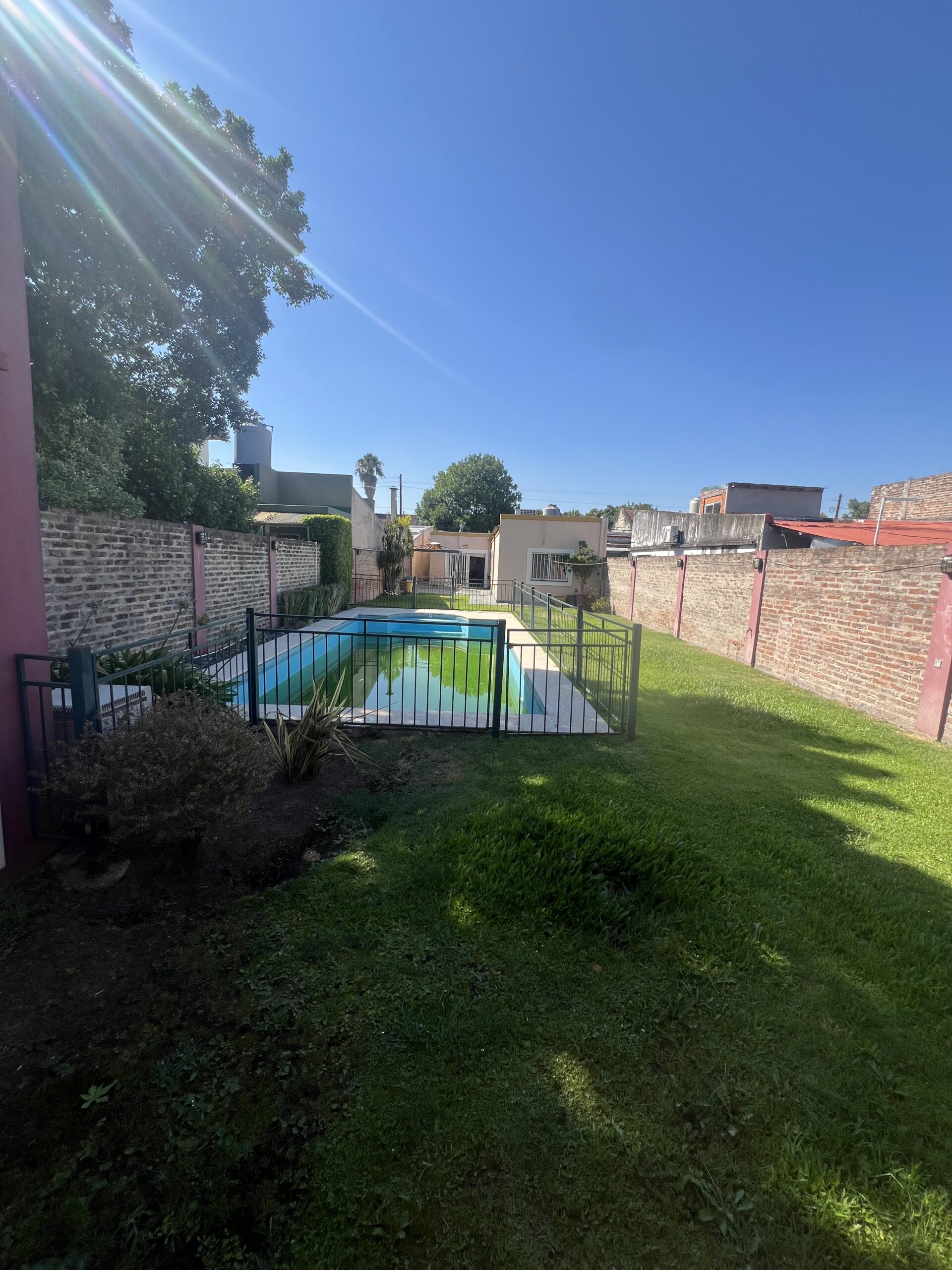 Cuenta con reja al frente, doble portón automático y cochera cubierta. Además, posee entrada lateral directa al jardín, lo que brinda mayor comodidad y circulación independiente.