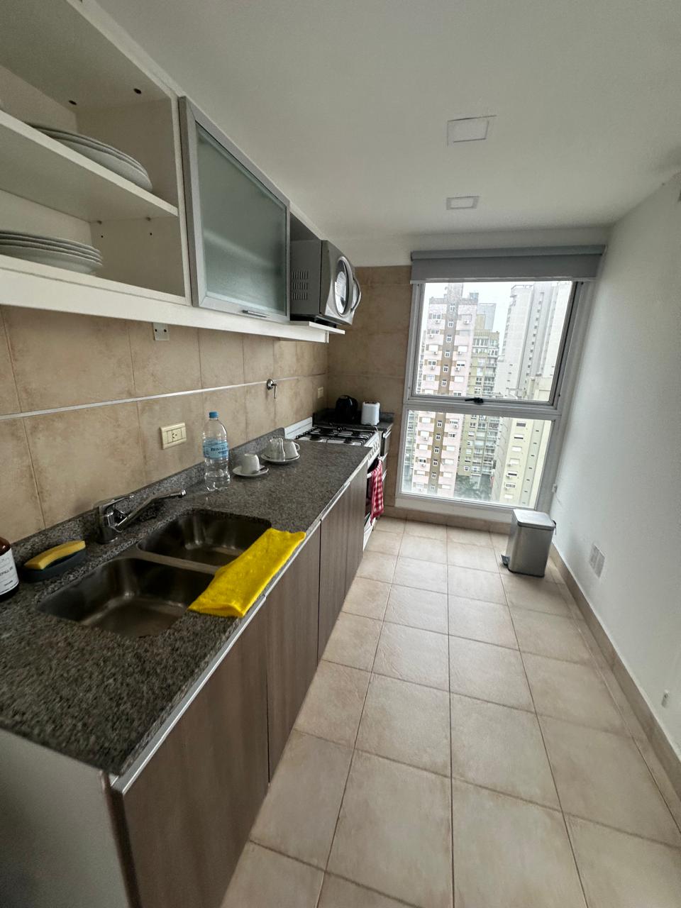 Cocina Equipada: La cocina semi-integrada viene completa con muebles de bajo mesada y alacena, mesada granítica de mármol, bacha doble de acero inoxidable y artefacto de cocina. ¡Solo necesitas traer tu lavarropas!