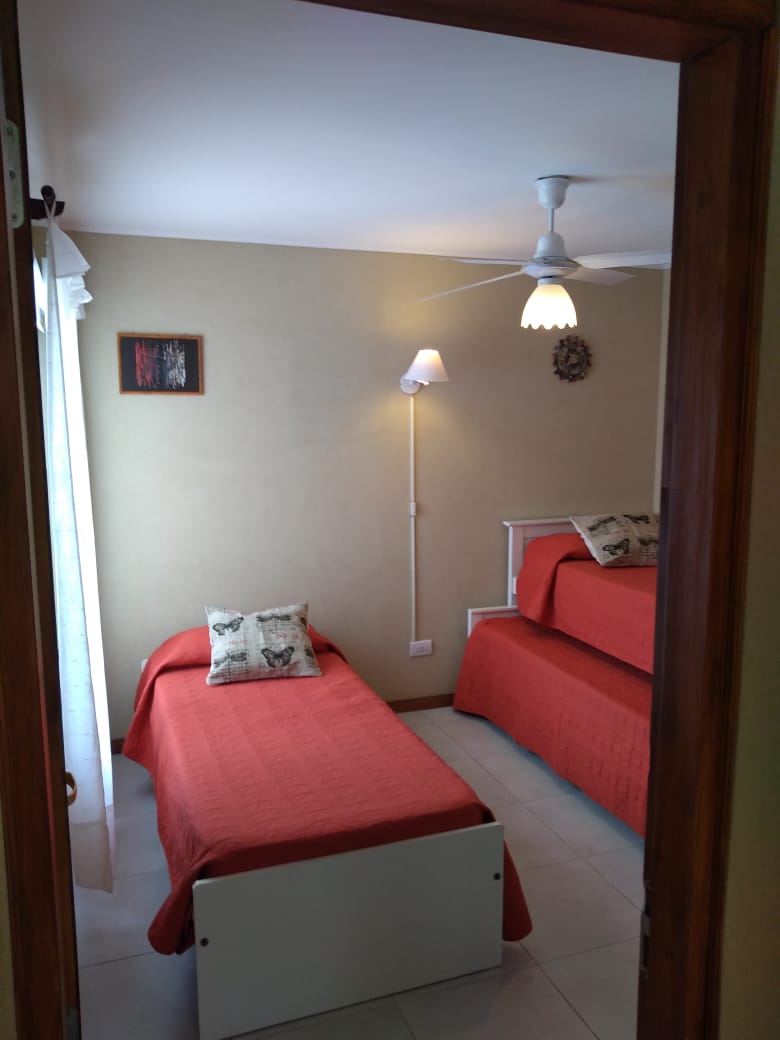 El segundo dormitorio dispone de tres camas individuales, placard con dos bauleras y ventilador.
