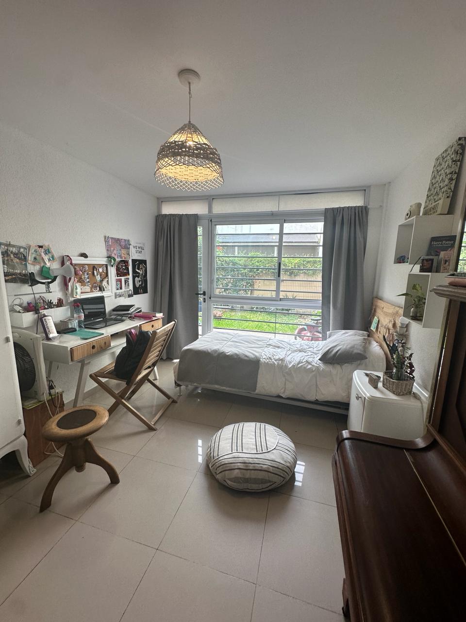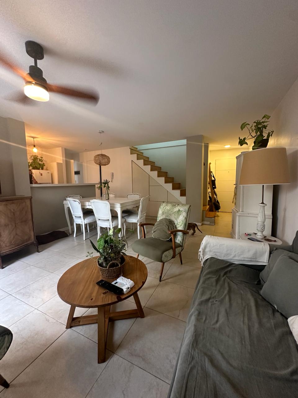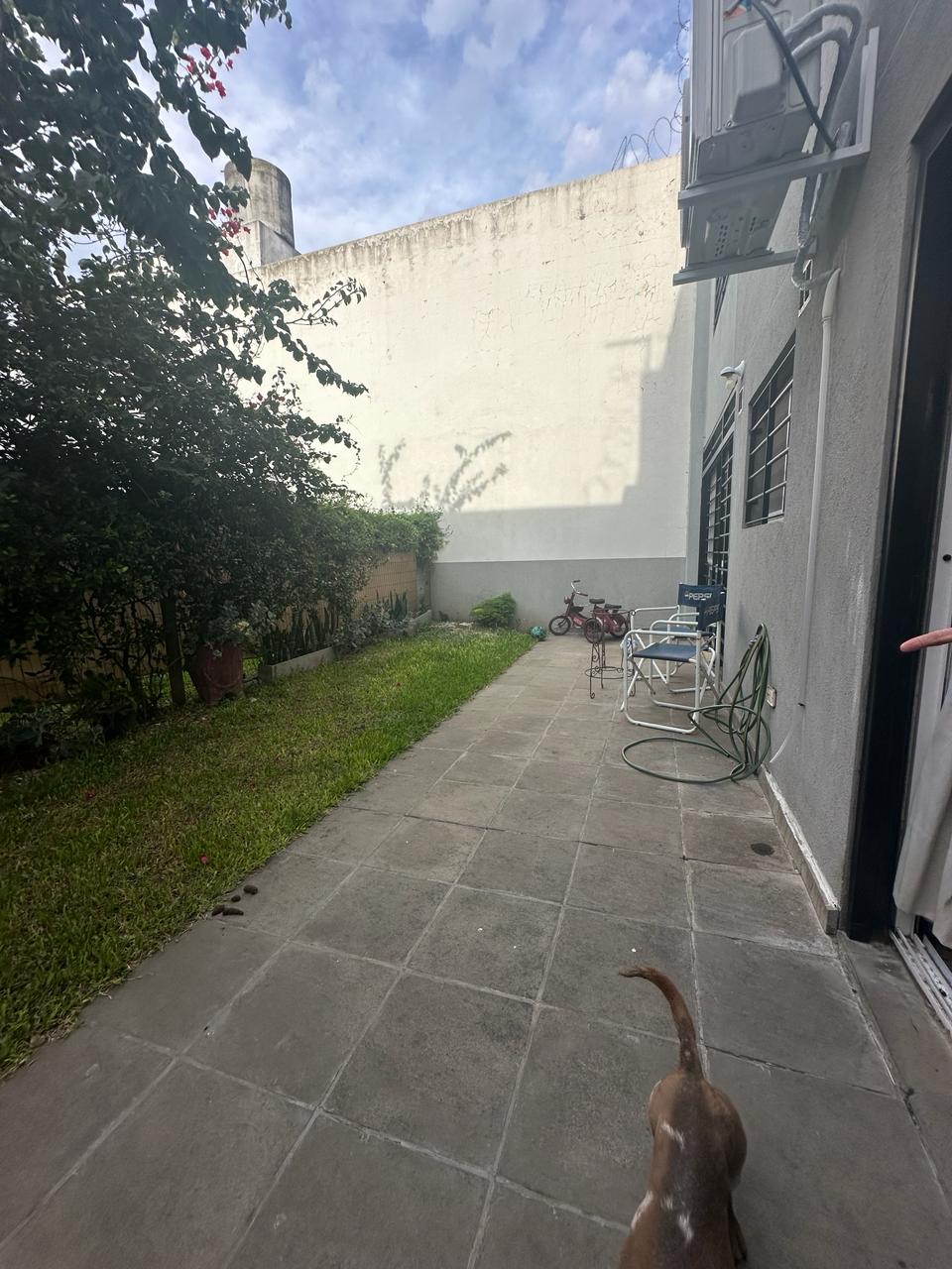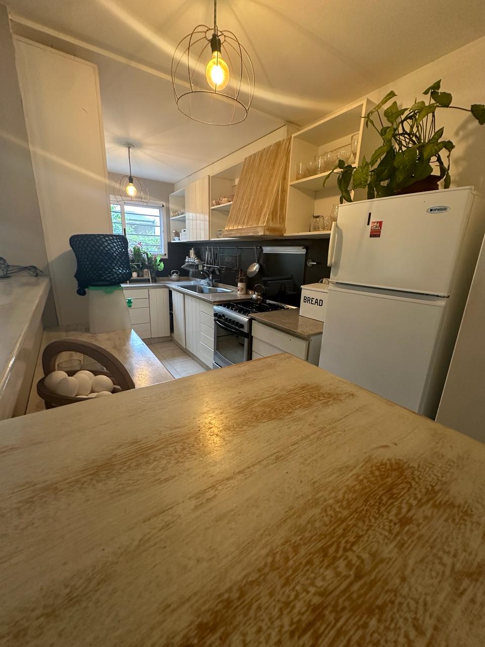 Depto 4 Ambientes con cochera en planta baja. 140 mts totales 100 cubiertos. Depto de 4 ambientes consta de dos plantas planta baja con ingreso a living comedor espacioso y muy luminoso, aberturas ventana balcón con salida al jardín propio del Depto. Cocina integrada con muebles alto y bajo mesada, barra desayunadora. Mucho espacio de guardado. Baño con ducha. Gran oficina o playroom y sala de guardado con salida directo a la cochera del Depto. Estufas de tiro balanceado. Jardín de 40 mts aprox.Planta alta con escalera que lleva a pasillo distribuidor amplio con biblioteca y dos dormitorios, uno con salida a deck pequeño, baño completo con bañera. Placas eléctricas de calefacción! Cochera cubierta. Sum con jardín común