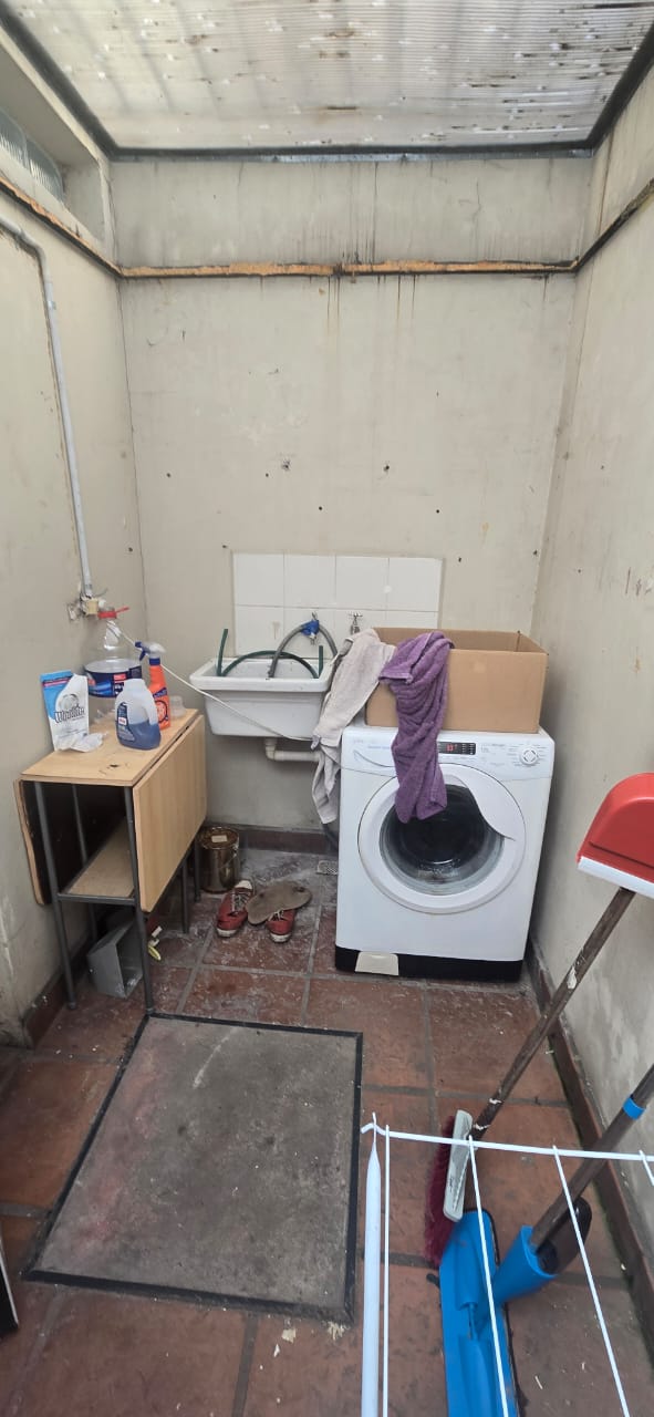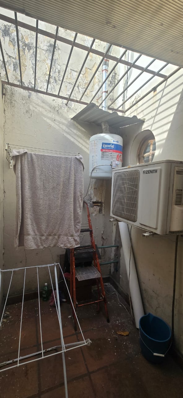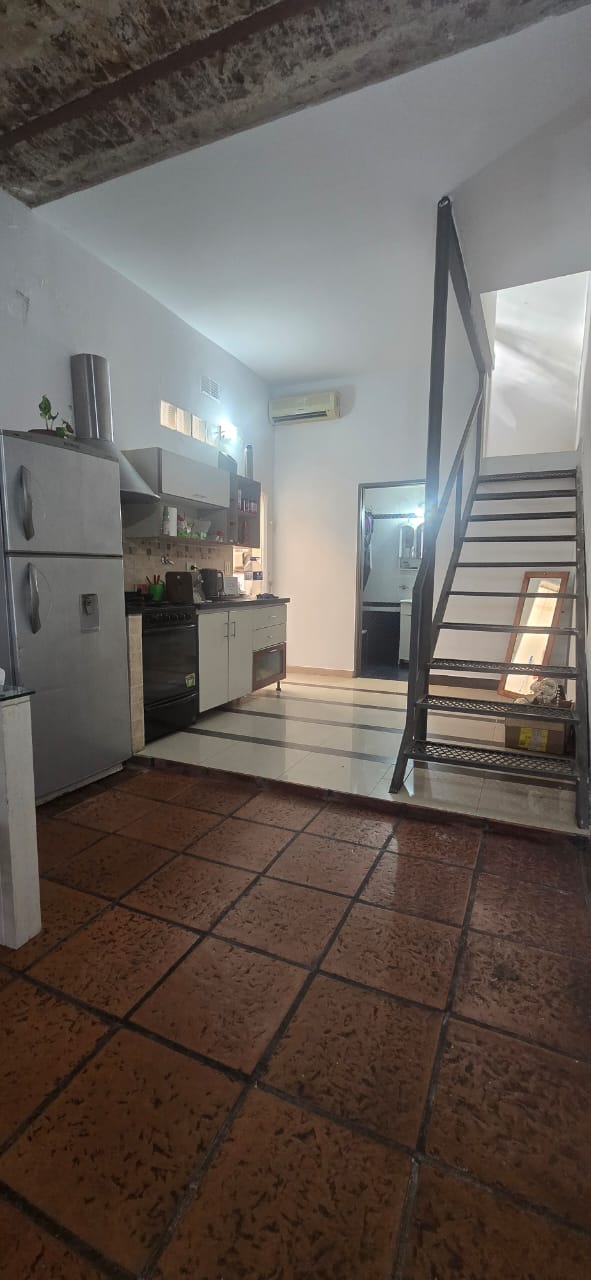 En planta baja dispone de un portón de ingreso con espacio para un vehículo, cocina al fondo con instalaciones de gas y agua, baño completo y patio trasero semicubierto.